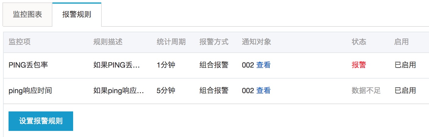 既然是监控,那么报警自然是一个非常重要的步骤,如何设置报警规则呢? 点击列表进入 报警规则 —— 设置报警规则