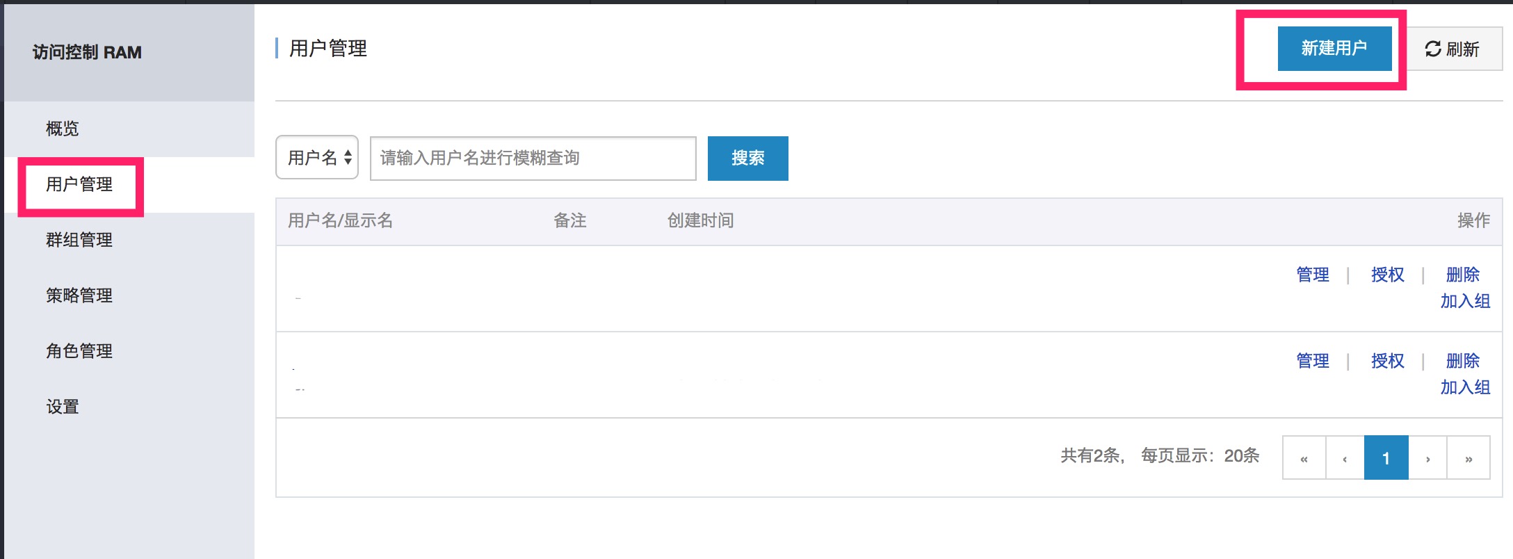 然后把创建好的 AccessKeyID 和 AccessKeySecret 记好。